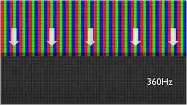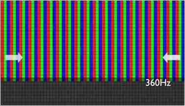 传统液晶驱动是从左到右单向进行,,,在画面更新速度愈来越愈快的情况下,,,位于驱动线路末端的右下角区域,,,画素的闸极来不及在短时间内获得足够电压,,,,无法显示出正确的颜色资讯。。 |