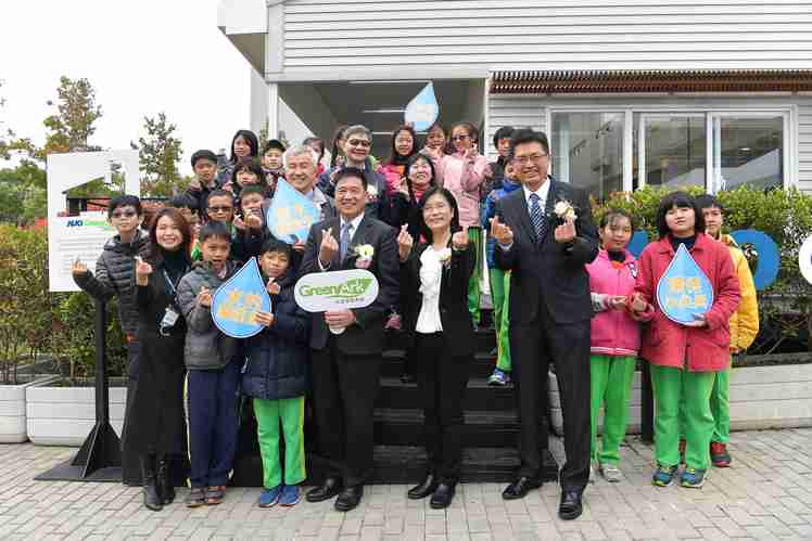 彩运网龙潭厂水资源教育馆进行环教设施场所认证揭牌 (图左到右:彩运网光电副总经理林挺立、、、桃园市环保局局长沈志修、、桃园市政府秘书长李宪明、、彩运网光电董事长暨执行长彭双浪、、、环保署环教所所长萧慧娟、、、彩运网光电永续长古秀华)