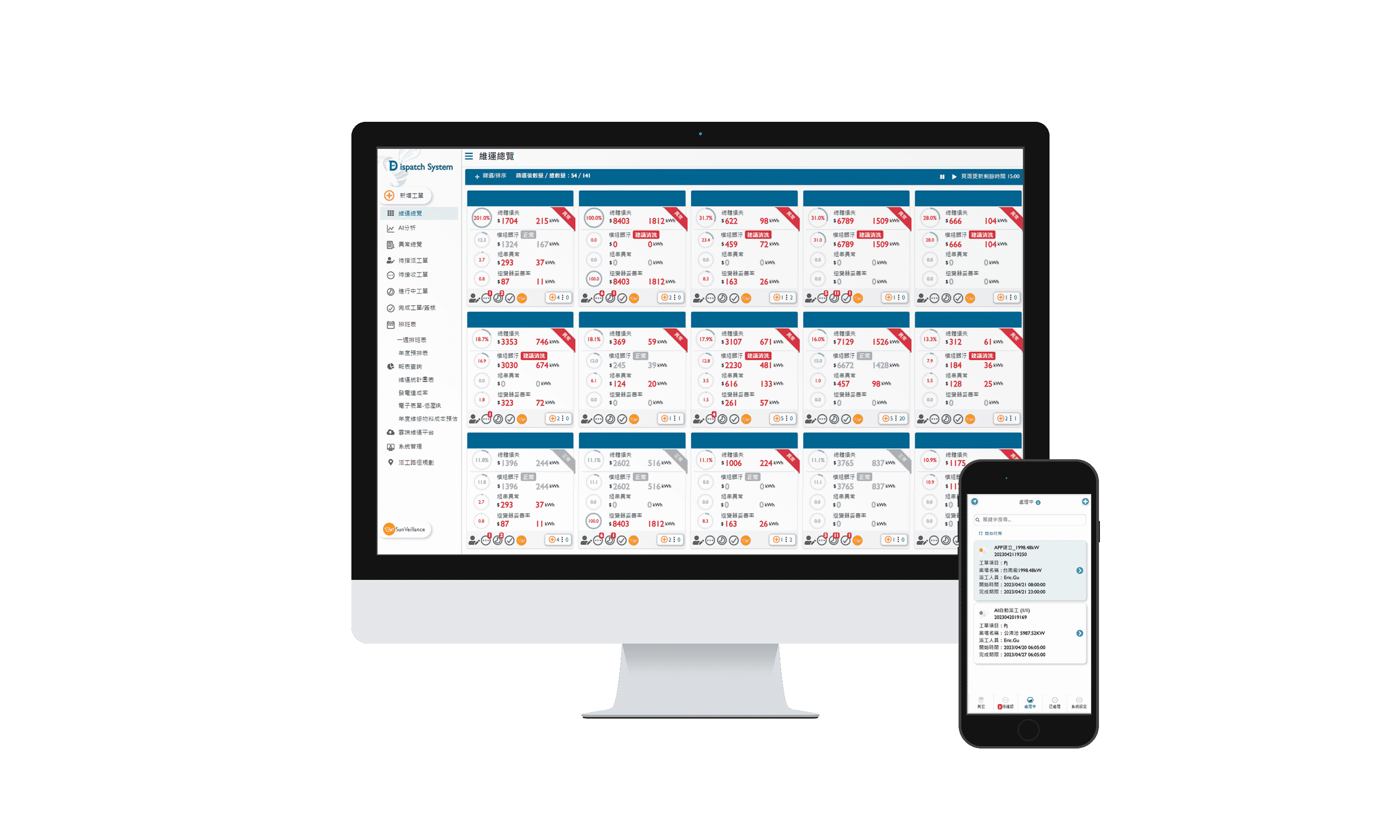 彩运网太阳能智能运维管理系统包括云端监控工具、、、、AI分析与智慧自动派工及运维APP,,,,实现电厂自主管理。。